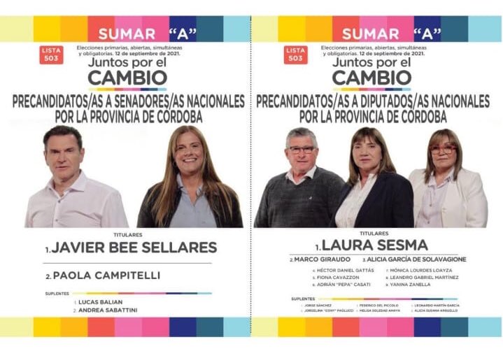 Juntos por el Cambio se presenta en estas elecciones primarias con una serie de alternativas en los distintos distritos electorales. De todas maneras los analistas anticipan que en noviembre Juntos por el Cambio volverá a ganar en la provincia quedándose con los dos senadores que le corresponden a la mayoría y con 5 diputados de los 9 que se renuevan. CUÁLES SON LAS DIFERENCIAS ENTRE VOTO EN BLANCO VÁLIDO NULO IMPUGNADO Y RECURRIDO La lista 503 de Juntos por el Cambio en Córdoba.